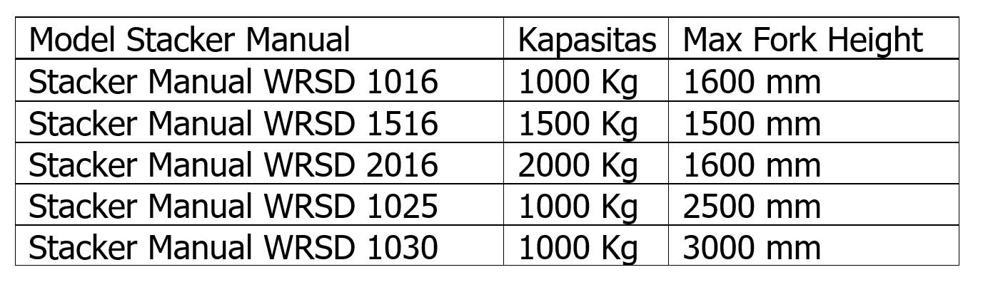Stacker Manual Dari PT Liftco sebagai berikut